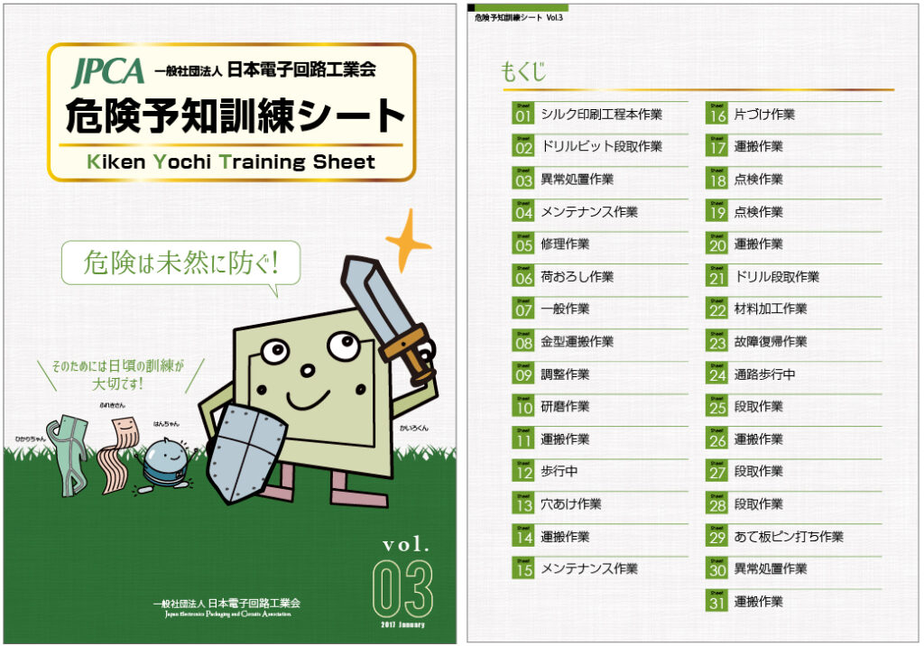 より安全な労働環境構築に向けた活動の充実を社会的責任(SR:Social Responsibility)の一環と考え、労働災害調査の結果に基づき、安全衛生教育活動に役立つツール「ポスター」、「危険予知訓練(KYT)シート」、「薬品べからず集」等を作成し、JPCA会員並びに一般へ提供しています。